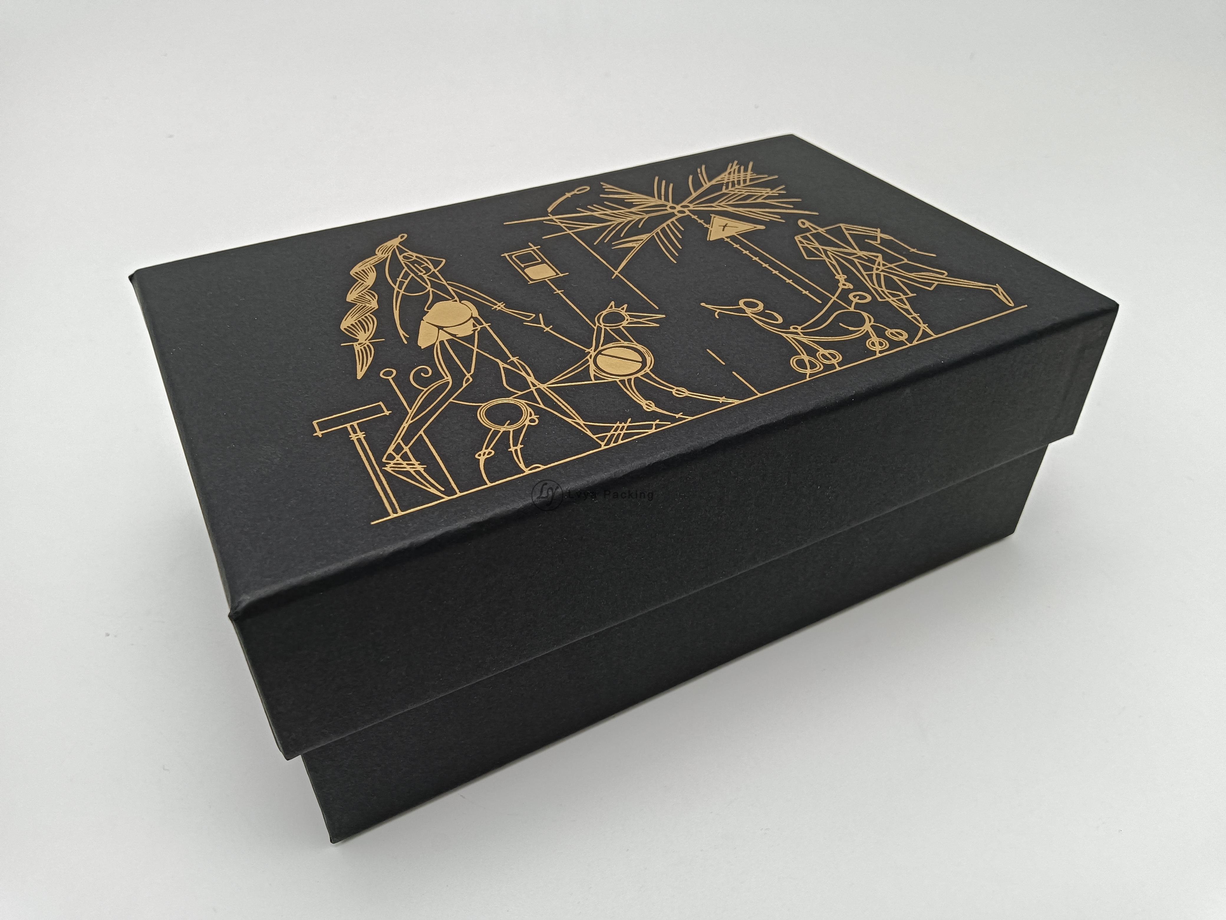Luxury High Quality Gold Stamping Lid and Base Gift Box Black Packaging Paper Top and Bottom Paperboard Box With Custom Logo